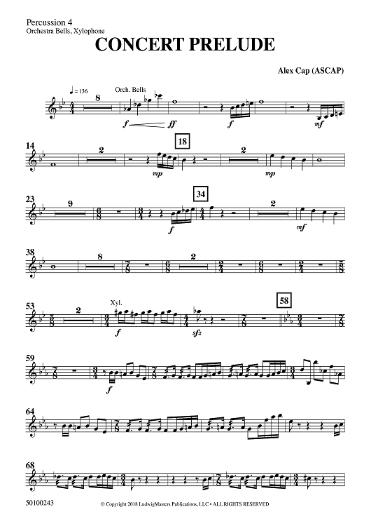 Digital Sheet Music for Concert Prelude - Percussion 4 by Alex Cap scored for Symphonic Band; id:508913