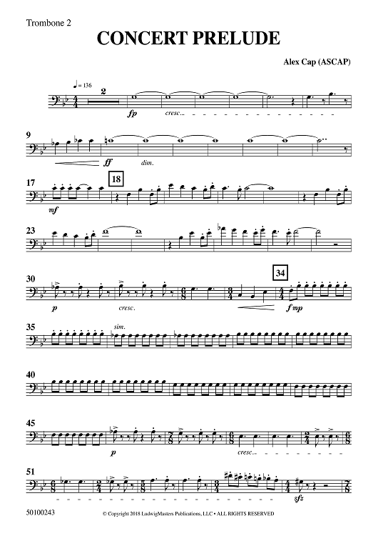 Digital Sheet Music for Concert Prelude - Trombone 2 by Alex Cap scored for Symphonic Band; id:508903
