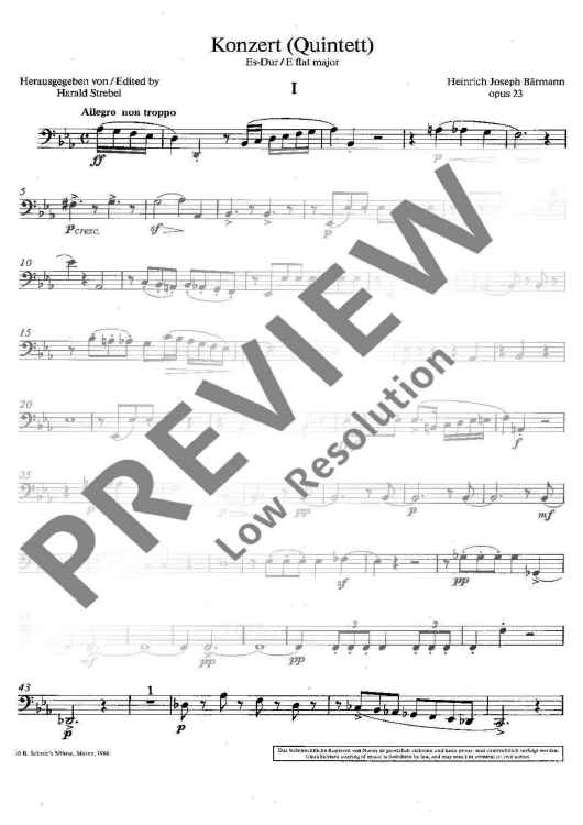 "Concert (Quintet) Eb major - Violoncello" Sheet Music by Heinrich Joseph Baermann