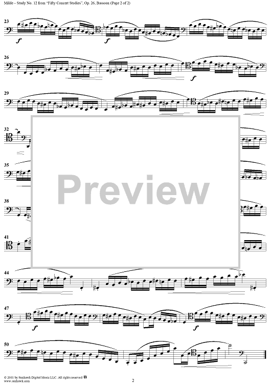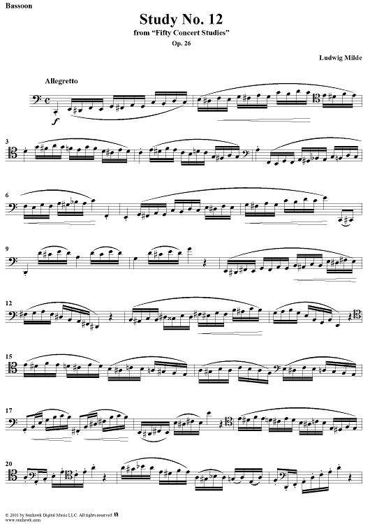 Digital Sheet Music for Concert Study No. 12 by Ludwig Milde scored for Bassoon; id:285611