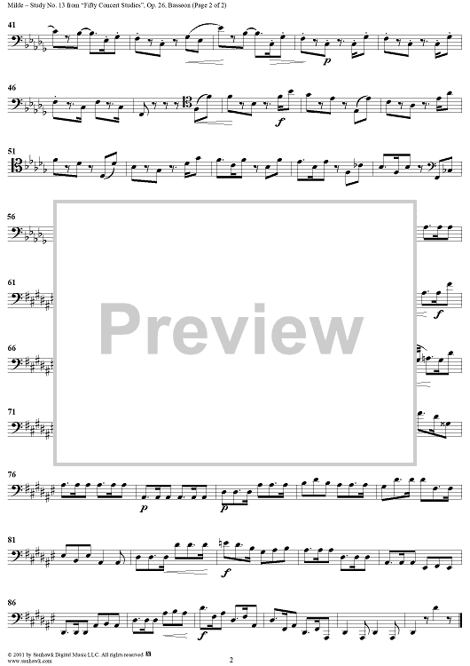 Digital Sheet Music for Concert Study No. 13 by Ludwig Milde scored for Bassoon; id:285612