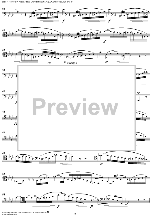 Digital Sheet Music for Concert Study No. 3 by Ludwig Milde scored for Bassoon; id:285630