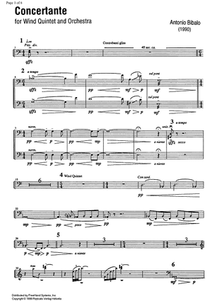 Digital Sheet Music for Concertante - Cello by , Antonio Bibalo scored for Wind Quintet/Orchestra; id:329890