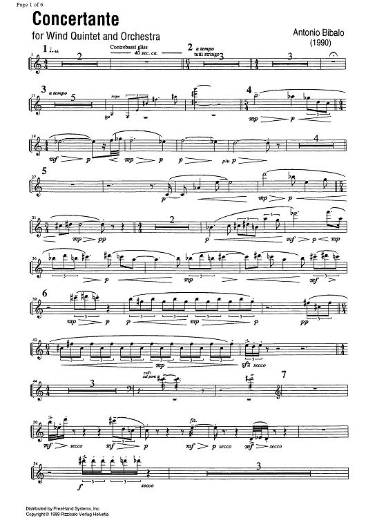 Digital Sheet Music for Concertante - Flute Solo by , Antonio Bibalo scored for Wind Quintet/Orchestra; id:329892