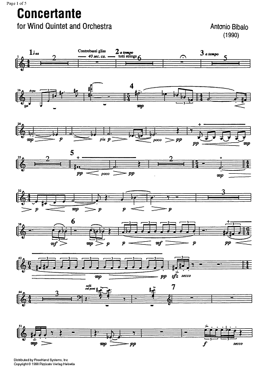 Digital Sheet Music for Concertante - Solo Horn by , Antonio Bibalo scored for Wind Quintet/Orchestra; id:329895