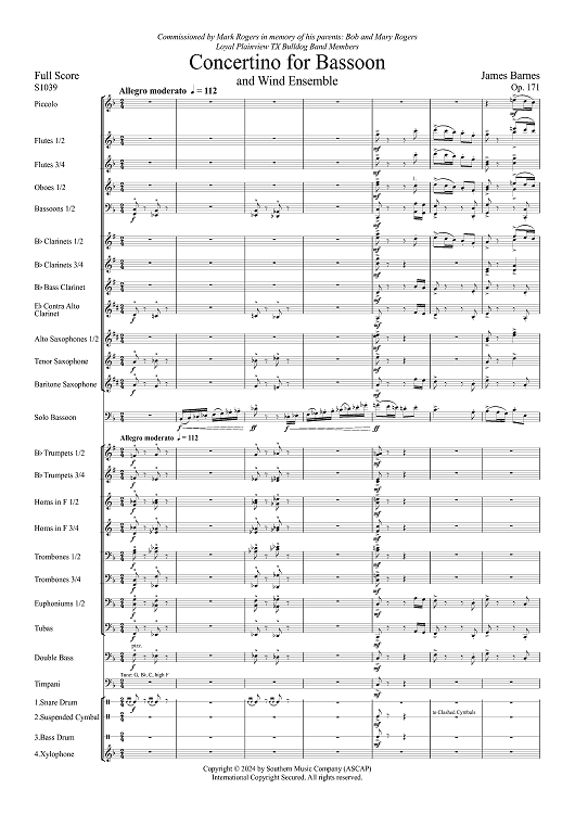 "Concertino for Bassoon and Wind Ensemble - Full Score" Sheet Music by James Barnes