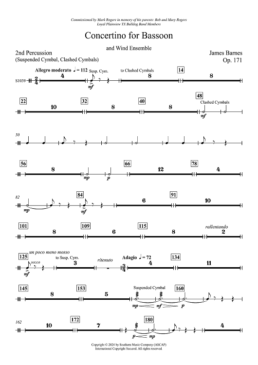 "Concertino for Bassoon and Wind Ensemble - Percussion 2" Sheet Music by James Barnes
