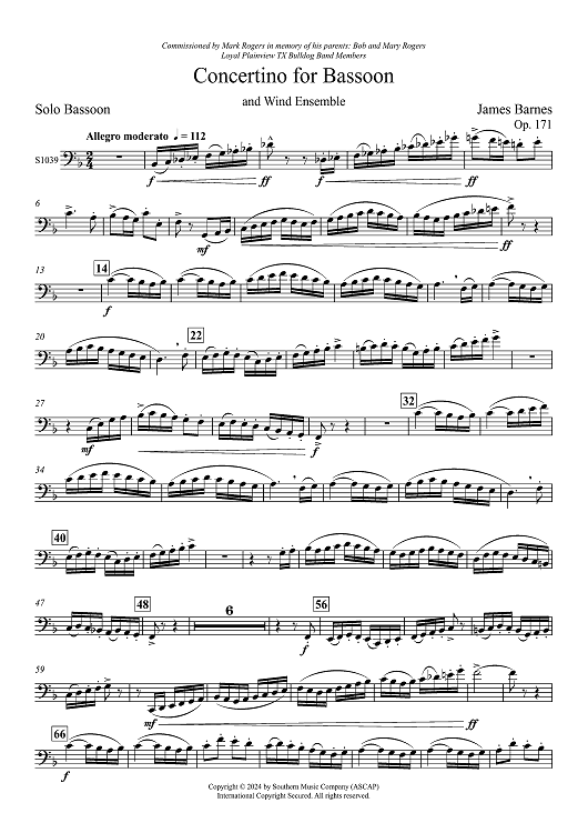 Digital Sheet Music for Concertino for Bassoon and Wind Ensemble - Solo Bassoon by James Barnes scored for Concert Band; id:504639
