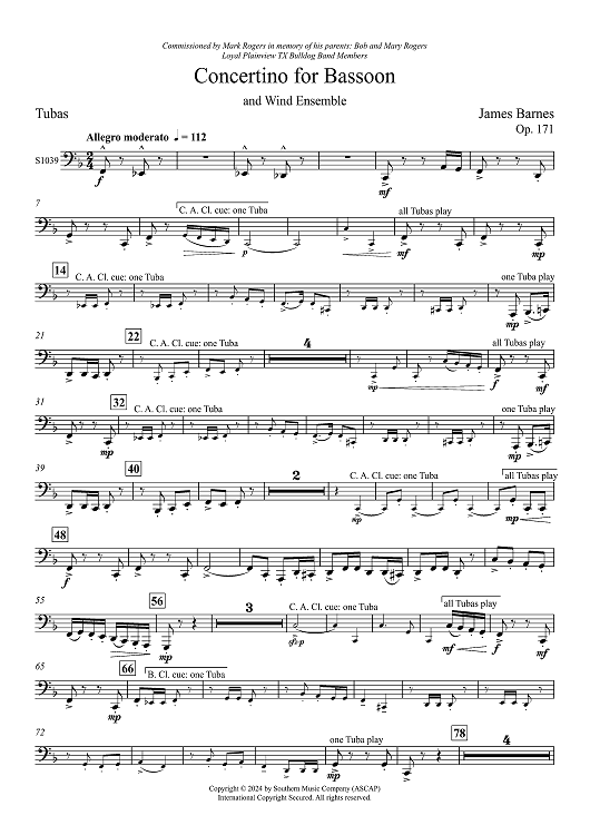 "Concertino for Bassoon and Wind Ensemble - Tuba" Sheet Music by James Barnes