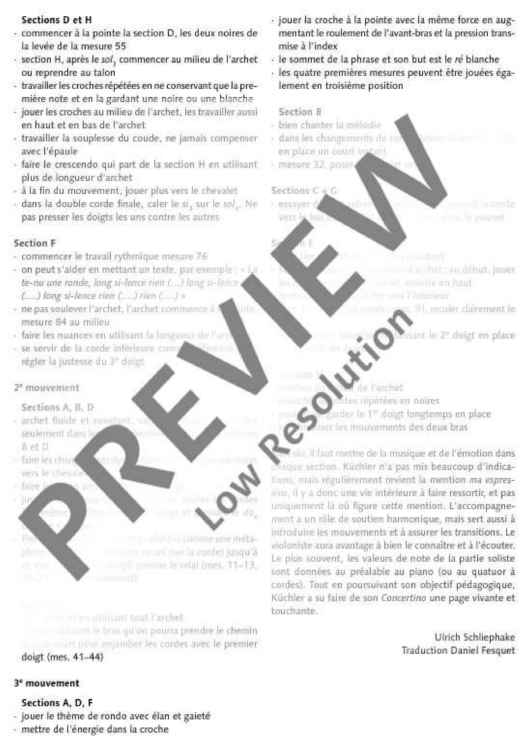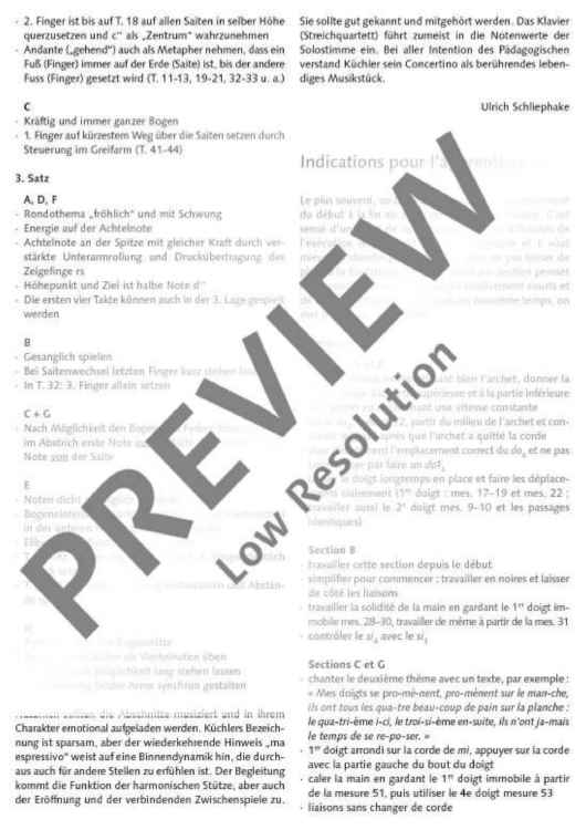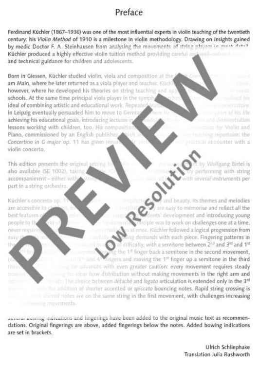 Ferdinand Küchler is regarded as one of the great violin teachers of the 20th century, due, in large part, to his popular violin method. His Concertino remains a popular entry-level piece for students to this day. The piece is characterized by simplicity, clarity and beauty. The themes and melodies are easily identifiable by children, yet never trite and plain. They are catchy and perfectly reflect Küchler‘s educational ideology – “to always separate the difficulties and never demand that the pupil overcome two difficulties at once”. The work is also available in an arrangement for solo violin with string quartet accompaniment (with double-bass ad lib.)(Schott, SE 1002). The viola part can be replaced by a third violin if necessary. By using the parts for multiple players, this can also be performed by a beginner string orchestra. This edition is part of the new Schott Student Edition series which offers varied literature at five different levels of difficulty, from 1 (easy) to 5 (difficult), for instrumental lessons: In print or electronic format Available as printed editions or PDF download Practising – efficiently and with pleasure: Accompanying tracks of the pieces available as downloads