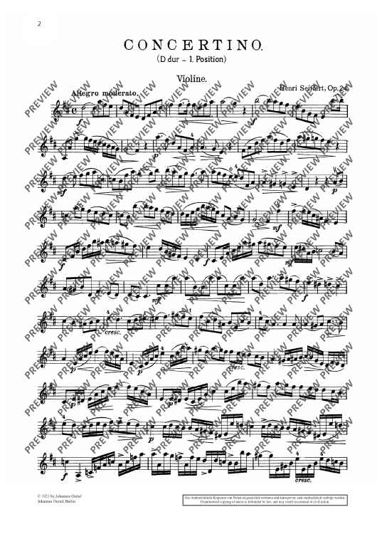 Nur bis zur ersten Lage muss die Violine beherrscht werden, aber unterschätzen sollte man das einsätzige Concertino mit seinen Läufen, Akkordbrechungen und elegant zu phrasierenden Melodien nicht. In jedem Fall wird das klangschöne Stück ein Erfolg in einem der ersten Konzerte junger Geiger:innen.