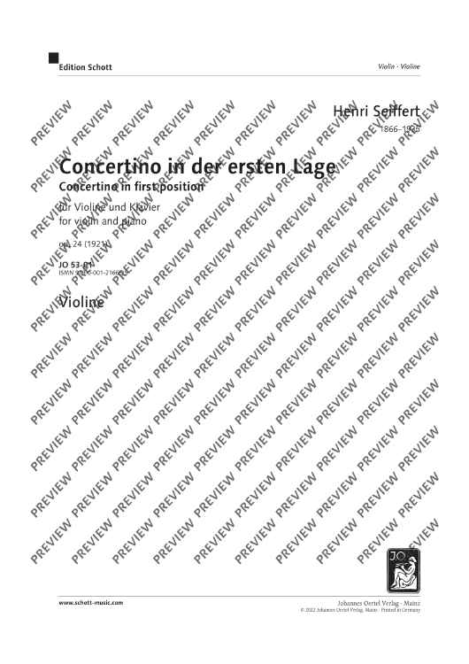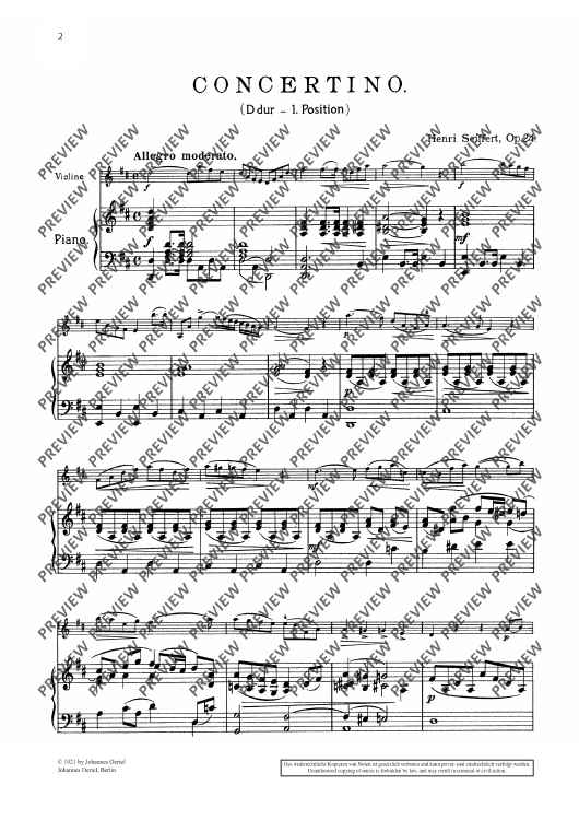 "Concertino in D Major - Score and Parts" Sheet Music by Henri Seiffert