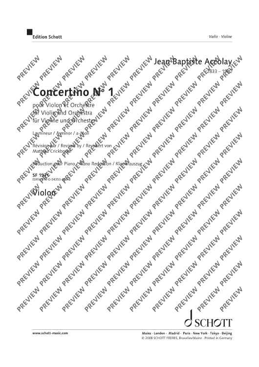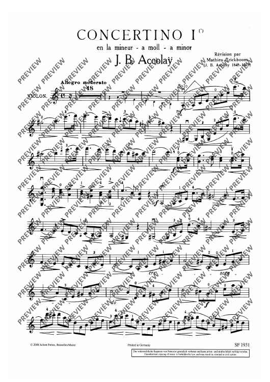 "Concertino No. 1 A Minor" Sheet Music by Jean Baptiste Accolay