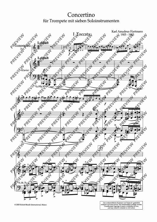 "Concertino - Piano Score and Solo Part" Sheet Music by Karl Amadeus Hartmann
