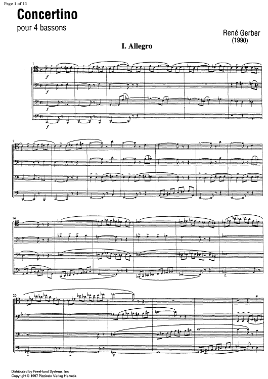 Digital Sheet Music for Concertino - Score by , René Gerber scored for 4 Bassoons; id:331043