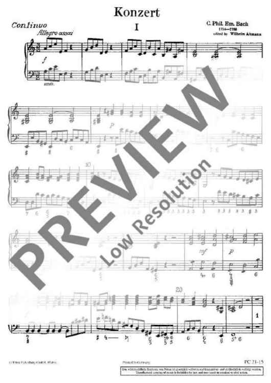 "Concerto A minor - Basso Continuo" Sheet Music by Carl Philipp Emanuel Bach