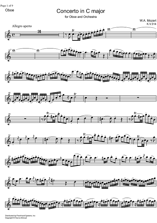 "Concerto C Major KV314 - Oboe" Sheet Music by Wolfgang Amadeus Mozart
