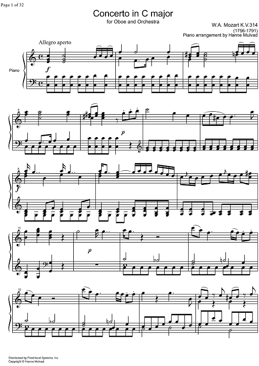 Digital Sheet Music for Concerto C Major KV314 - Score by , Wolfgang Amadeus Mozart scored for Oboe/Piano; id:328865