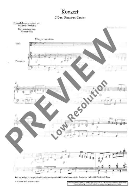 Digital Sheet Music for Concerto C Major - Piano Score and Solo Part by Roman Hofstetter scored for Viola, Strings, 2 Oboes And 2 Horns In C; id:476544