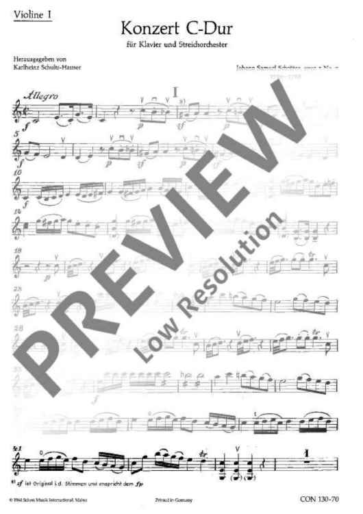 Digital Sheet Music for Concerto C Major - Violin I by Johann Samuel Schroeter scored for Piano And String Orchestra; id:487362