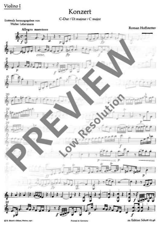 "Concerto C Major - Violin I" Sheet Music by Roman Hofstetter