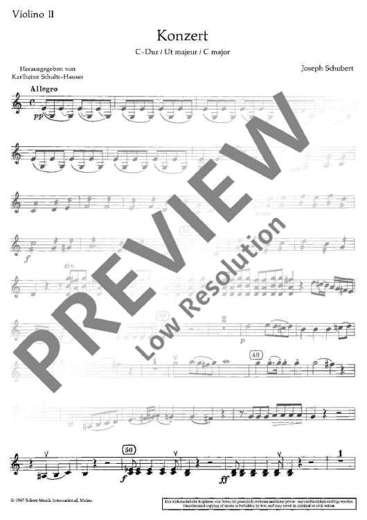 Digital Sheet Music for Concerto C Major - Violin Ii Rip. by Joseph Schubert scored for Viola And Orchestra; id:487599