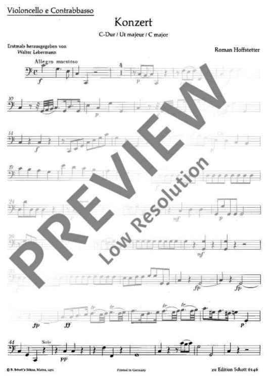 "Concerto C Major - Violoncello/double Bass" Sheet Music by Roman Hofstetter
