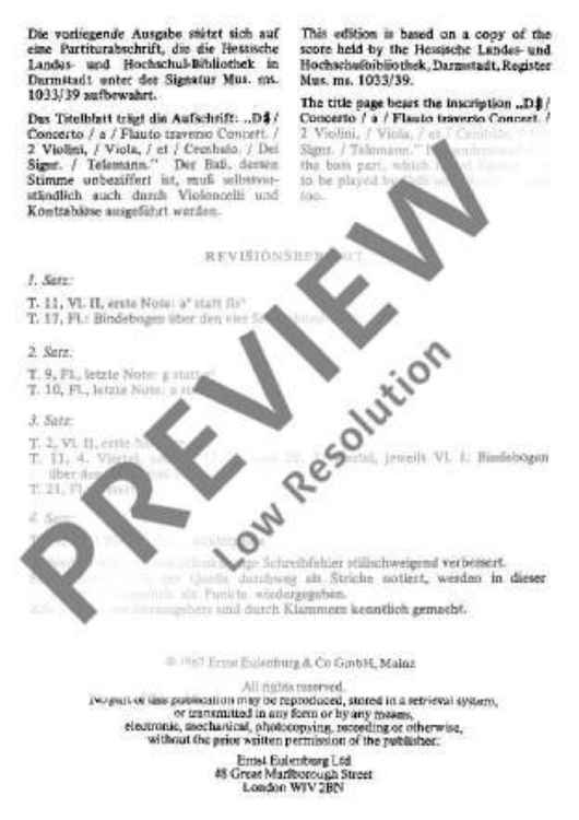 "Concerto D Major - Full Score" Sheet Music by Georg Philipp Telemann