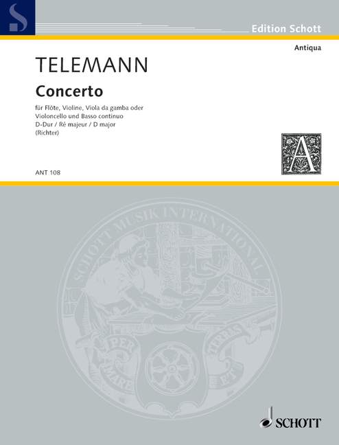 Digital Sheet Music for Concerto D Major by Georg Philipp Telemann scored for Flute, Violin, Viola Da Gamba (cello) And Basso Continuo; id:471110