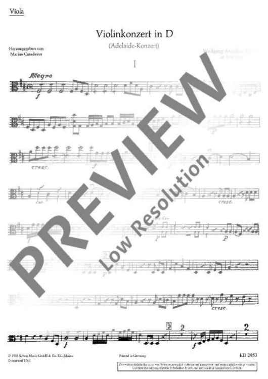 "Concerto D Major - Viola" Sheet Music by Wolfgang Amadeus Mozart