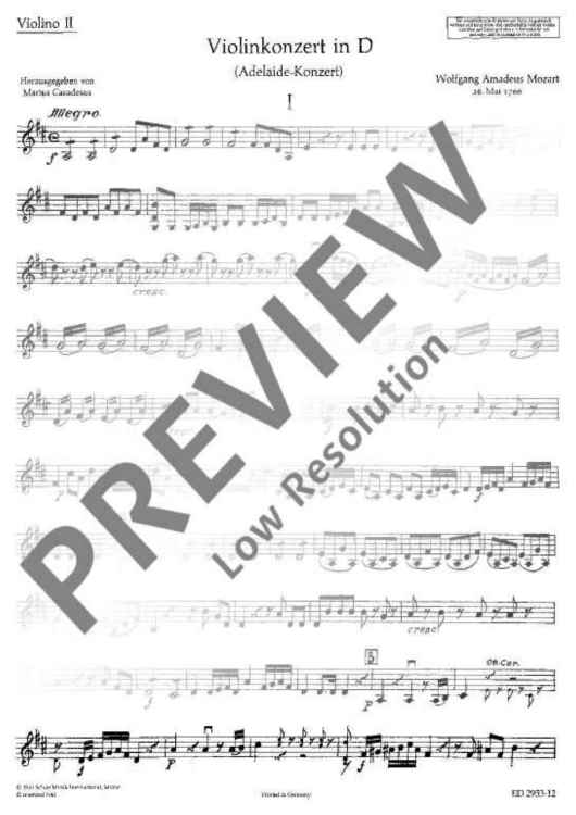 "Concerto D Major - Violin II" Sheet Music by Wolfgang Amadeus Mozart