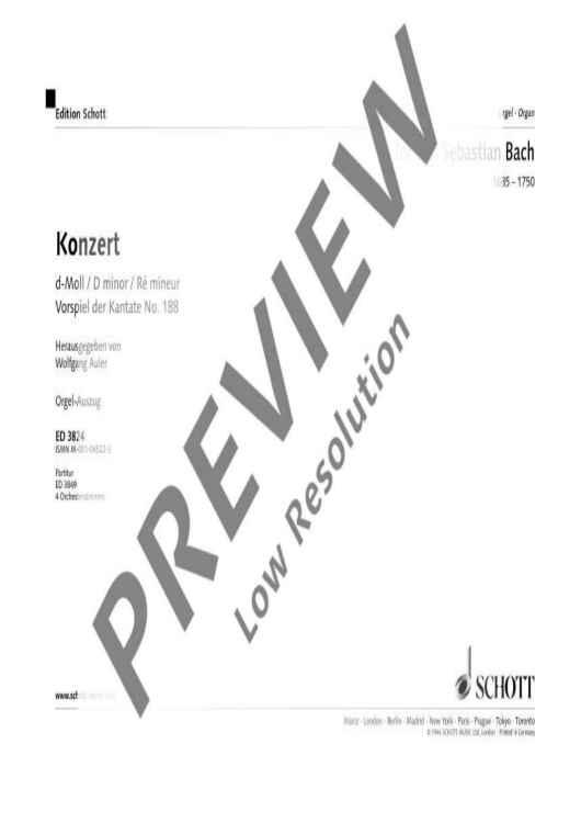 "Concerto d minor - Organ Reduction" Sheet Music by Johann Sebastian Bach