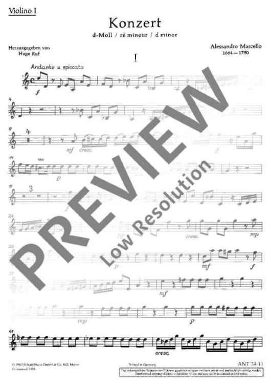 Digital Sheet Music for Concerto d minor - Violin I by Alessandro Marcello, Hugo Ruf scored for Oboe (violin), Strings And Basso Continuo (harpsichord/organ); Cello (viola Da Gamba) Ad Libitum; id:471065