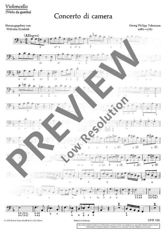 "Concerto di camera - Cello" Sheet Music by Georg Philipp Telemann