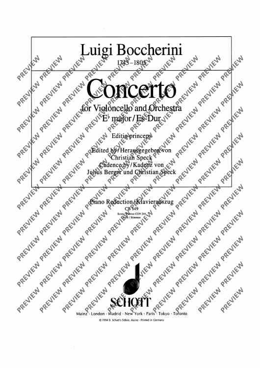 "Concerto E flat Major - Piano Score and Solo Part" Sheet Music by Luigi Boccherini