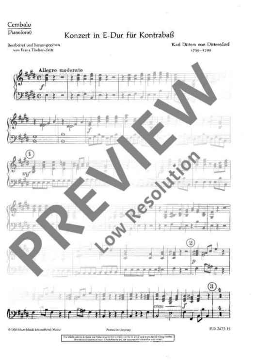 Digital Sheet Music for Concerto E Major - Harpsichord by Karl Ditters von Dittersdorf scored for Double Bass And Orchestra; id:472665