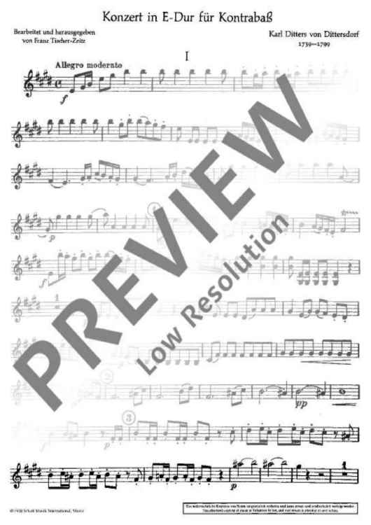 Digital Sheet Music for Concerto E Major - Violin I by Karl Ditters von Dittersdorf scored for Double Bass And Orchestra; id:472664