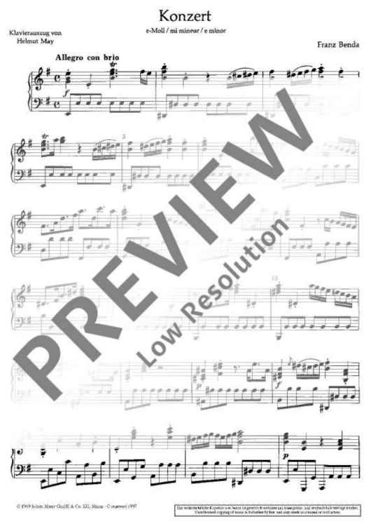"Concerto E Minor - Piano Score and Solo Part" Sheet Music by Franz Benda