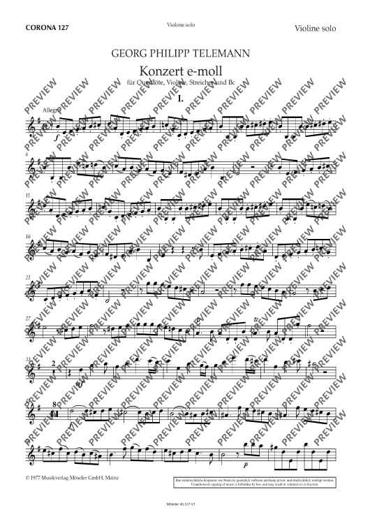 Digital Sheet Music for Concerto E Minor - Set of Parts by Georg Philipp Telemann, Adolf Hoffmann scored for Flute, Violin, String Orchestra And Basso Continuo; id:498657