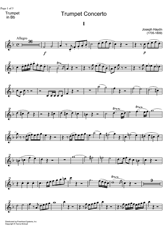 Digital Sheet Music for Concerto Eb Major - Trumpet in B-flat by Franz Joseph Haydn scored for Trumpet/Piano; id:326574