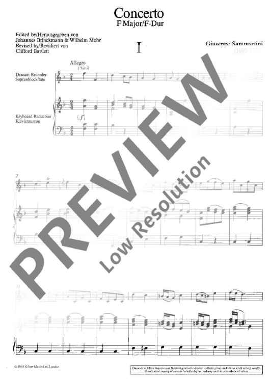"Concerto F Major - Piano Score and Solo Part" Sheet Music by Giuseppe Sammartini