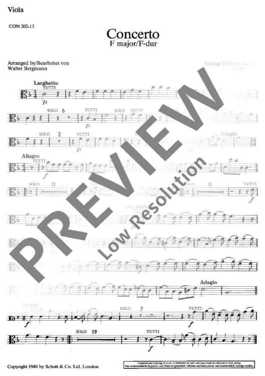 "Concerto F Major - Viola [violin Iii]" Sheet Music by George Frideric Handel
