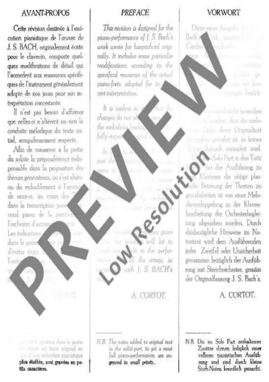 Digital Sheet Music for Concerto F minor - Piano Reduction by Alfred Cortot, Johann Sebastian Bach scored for Piano And String Orchestra; id:477620