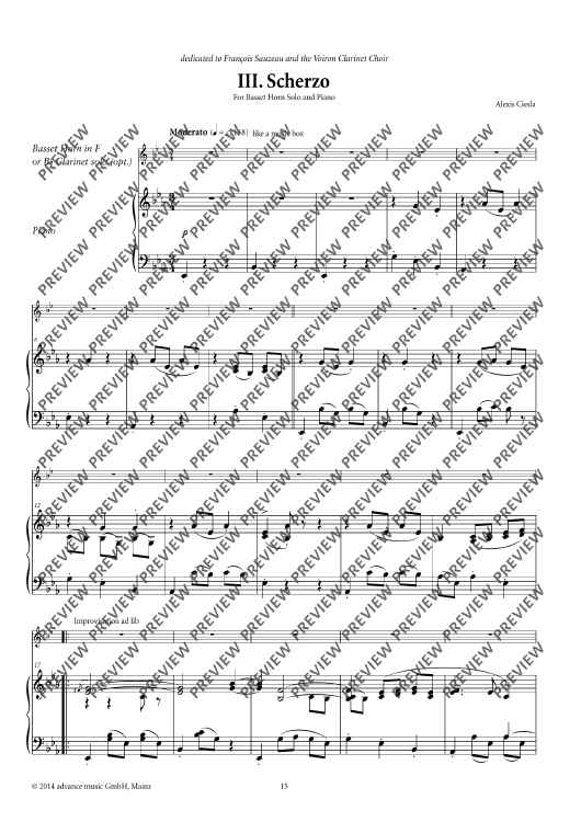 Featuring four original movements in classic dance styles, this unique suite for proficient soloists with piano offers performers with several unique options–the solo material may be played entirely on B flat clarinet, or a variety of solo instruments may be showcased using the alternative music that is provided: I. Fantasia (B flat clarinet); II. Habanera (bass clarinet); III. Scherzo (basset horn); and IV. Tarentella (E flat clarinet).