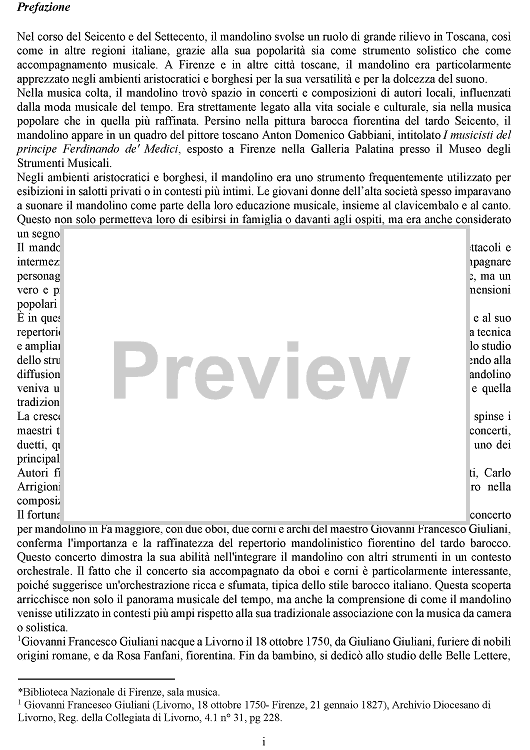 Digital Sheet Music for Concerto for Mandolin and Orchestra in F major - Score by Franco Pisciotta, Giovanni Francesco Giuliani scored for Mandolin and Orchestra; id:505873