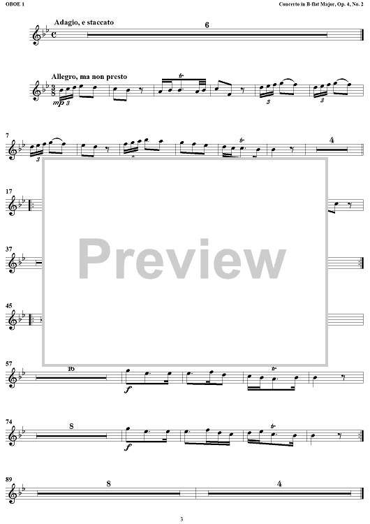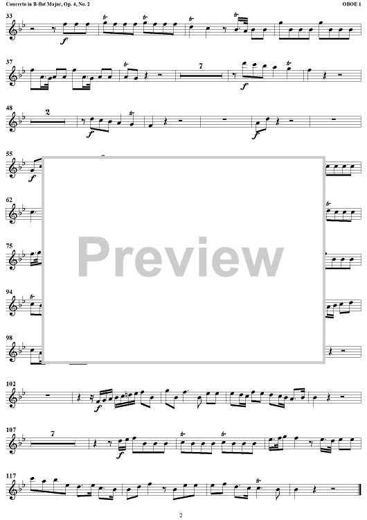 Digital Sheet Music for Concerto for Organ in Bb Major, Op 4, No. 2 (HMV 290) - Oboe 1 by George Frideric Handel scored for Organ and Orchestra; id:468881