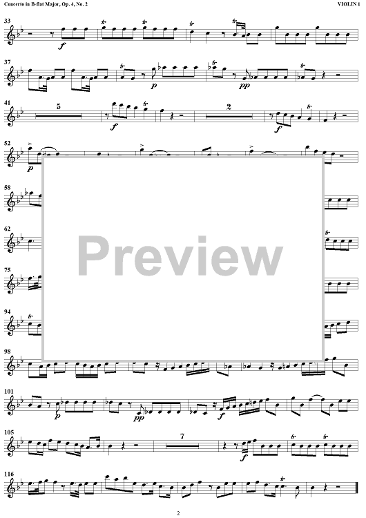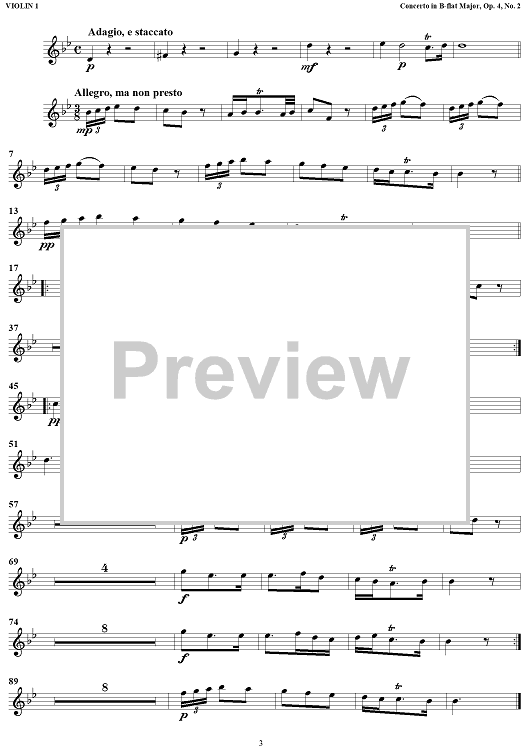 Digital Sheet Music for Concerto for Organ in Bb Major, Op 4, No. 2 (HMV 290) - Violin 1 by George Frideric Handel scored for Organ and Orchestra; id:468883