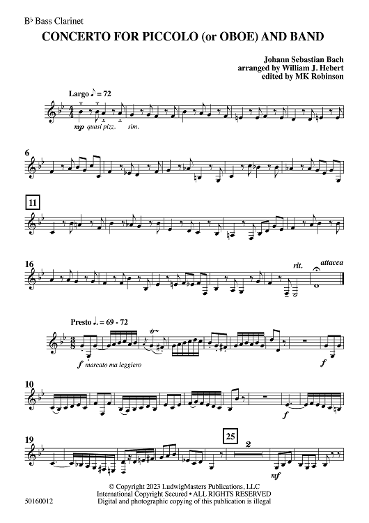 Digital Sheet Music for Concerto for Piccolo or Oboe and Band - Bb Bass Clarinet by Johann Sebastian Bach, William Hebert scored for Concert Band; id:510106