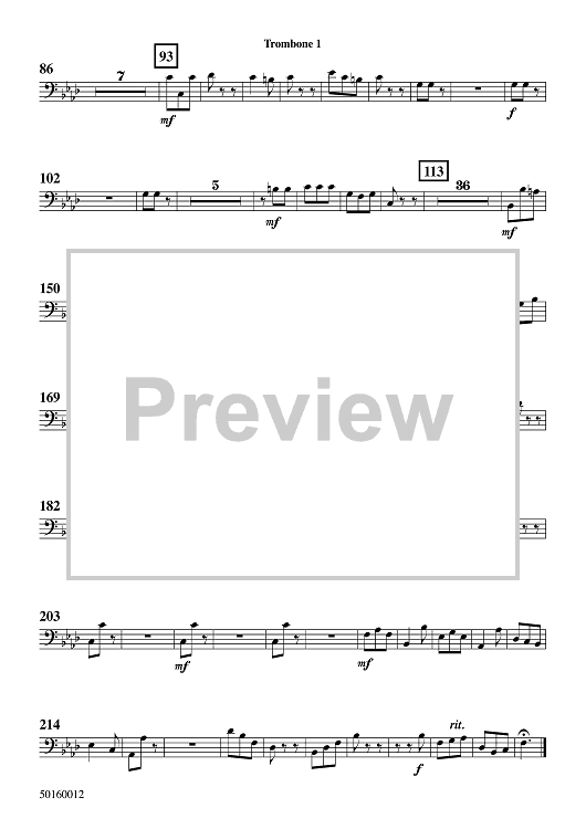 Digital Sheet Music for Concerto for Piccolo or Oboe and Band - Trombone 1 by Johann Sebastian Bach, William Hebert scored for Concert Band; id:510110
