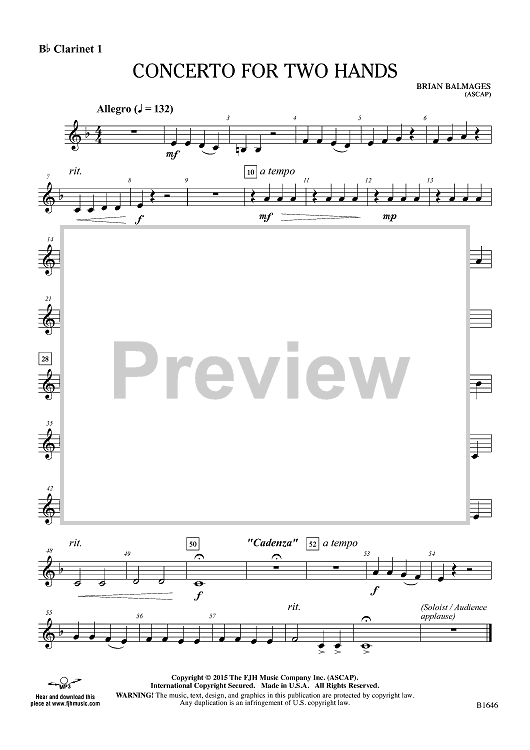 Digital Sheet Music for Concerto for Two Hands - Bb Clarinet 1 by Brian Balmages scored for Concert Band; id:455281